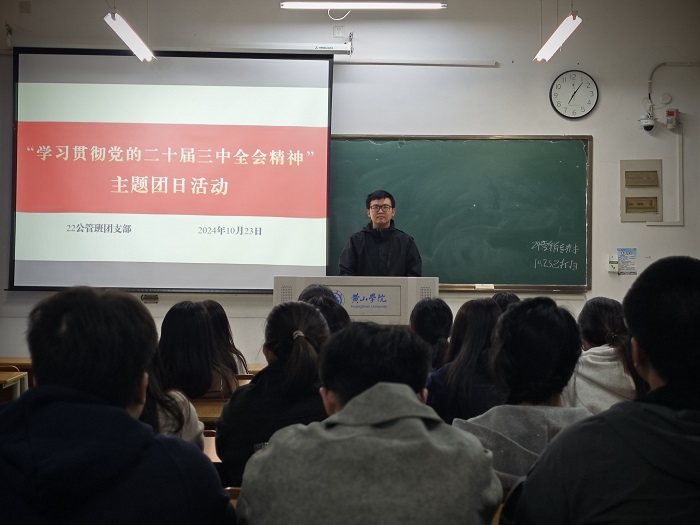 为深入学习贯彻宣传党的二十届三中全会精神,引导团员青年坚定不移听党话、跟党走,10月23日晚,22公管班团支部在横江校区1207教室开展了“学习贯彻党的二十届三中全会精神”主题团日活动,团支部全体团员参加。